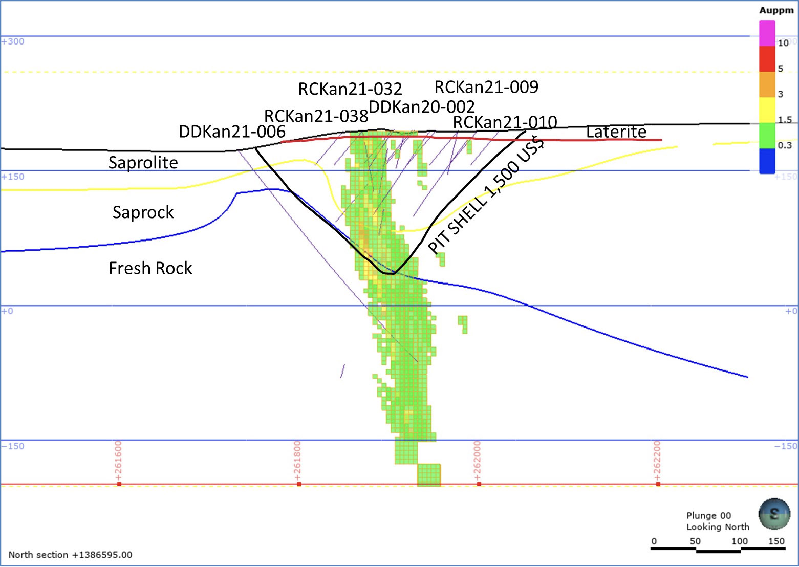 Nana Sangmuah, President & CEO, stated, “This mineral resource suggests a stand-alone project status for the Kandiole Gold Project. The good metallurgical recoveries, high-grade starter pit, low strip ratios, and the high-quality resource with 84% included in the indicated resource category and 72% within saprolite, points to a potential high-margin LOM operation.