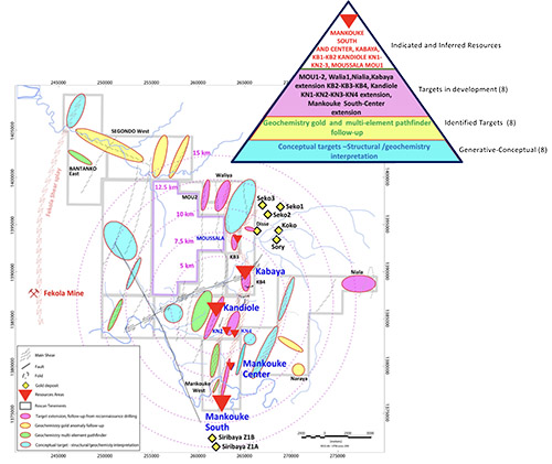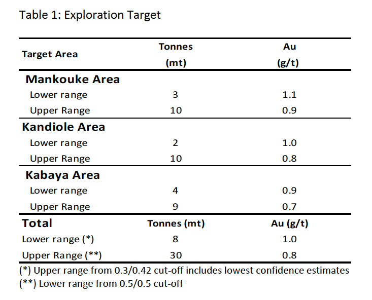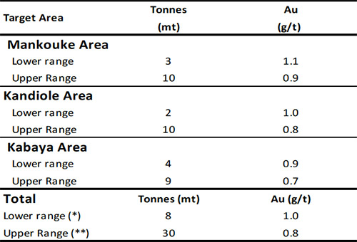 - Drilling prioritization to favor areas of immediate upside potential such as the Exploration Target areas at Mankouke South, Kabaya and Kandiole KN1 resource areas, including the oxide and sulphide mineralization, their satellites and extensions.
