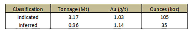 - Mineral Resource1 of 105Koz Indicated and 35Koz Inferred was pit-constrained to a depth of 58m